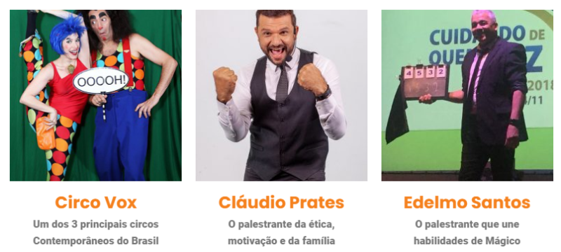 Seja para comemorar o aniversário da empresa, realizar uma confraternização, promover um evento motivacional ou solidário, uma atividade circense da Palestras de Sucesso certamente agradará a todos os públicos, trazendo humor, interação e até mesmo mágica.