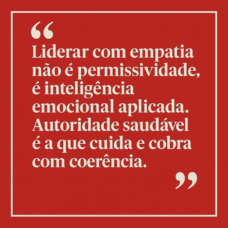 “Liderar com empatia não é permissividade, é inteligência emocional aplicada. Autoridade saudável é a que cuida e cobra com coerência.”