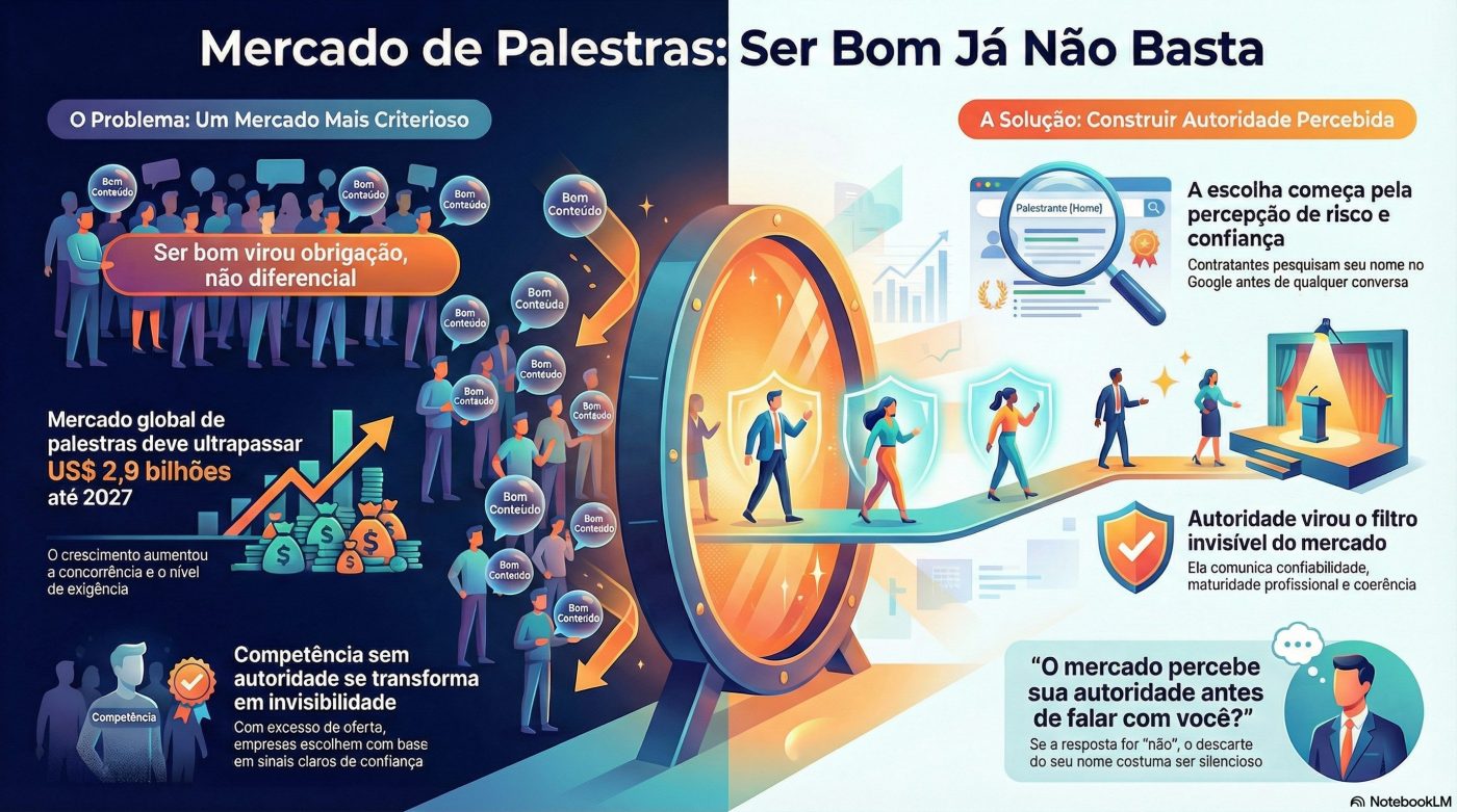 Durante muitos anos, o mercado de palestras operou sob uma lógica quase artesanal, bons conteúdos, histórias inspiradoras e domínio de palco eram suficientes para gerar convites e oportunidades.