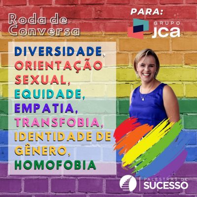 Ao entrar em contato com a Palestras de Sucesso, o Grupo JCA nos solicitou uma palestra com temas super relevantes, como por exemplo: 𝗗𝗜𝗩𝗘𝗥𝗦𝗜𝗗𝗔𝗗𝗘 e 𝗛𝗢𝗠𝗢𝗙𝗢𝗕𝗜𝗔. Temas que vem sido cada vez mais discutidos e procurados.