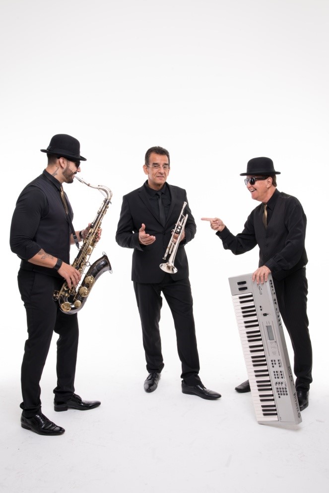 Músicos caracterizados de Blues Brothers (Do filme “Os irmãos Cara de Pau”)
